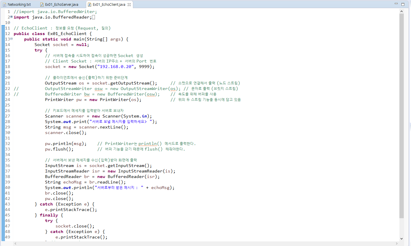- PrintWriter pw = new PrintWriter(os); : 위의 두 스트림 기능을 동시에 담고 있어서 이것을 주로 사용한다.