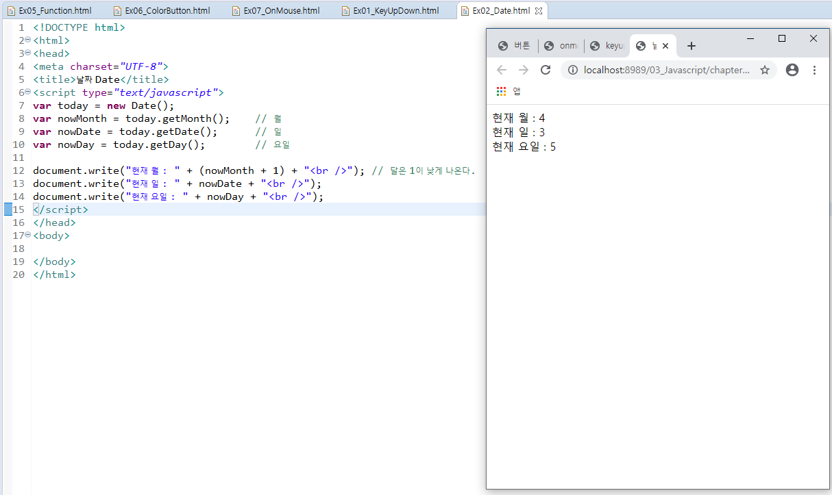 5. 함수, onclick, onmouse, onfocus, onkey, Date(), Number(), Math, miniproject06 본문