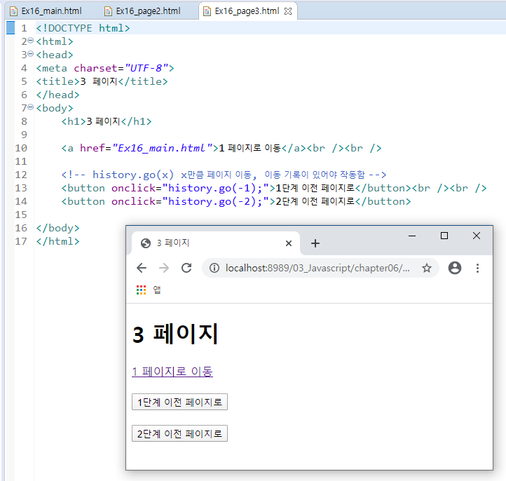 - history.back() : 방문 기록의 이전 페이지로 이동한다.