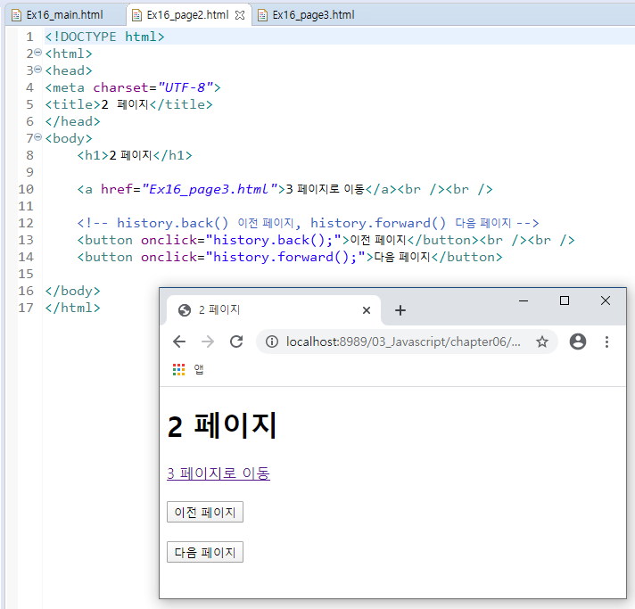 - history.back() : 방문 기록의 다음 페이지로 이동한다.