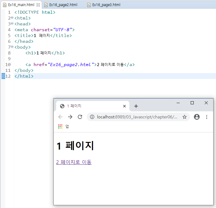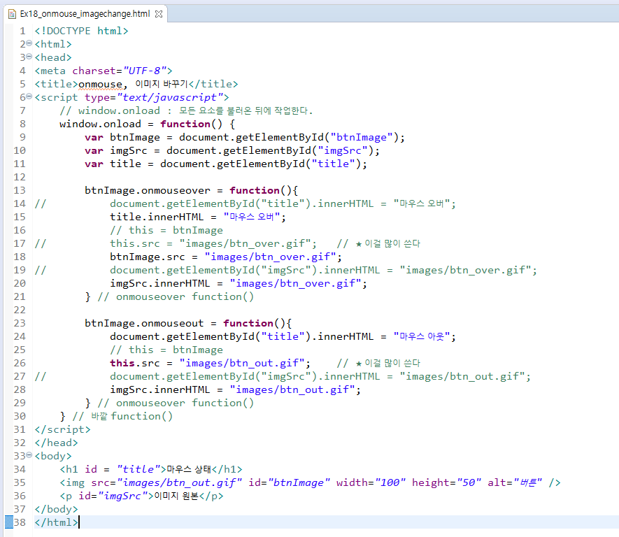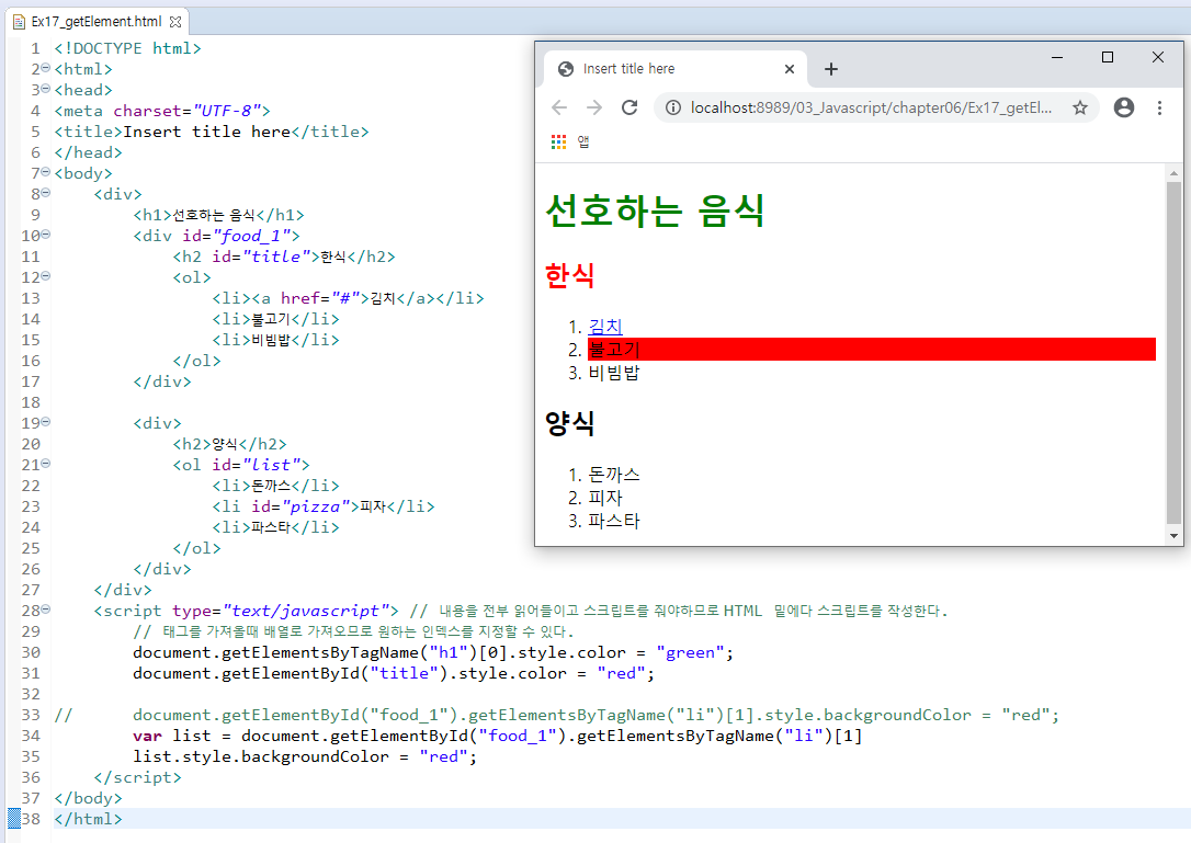 - <script> 태그가 페이지가 다 로드된 후에 작동돼야 하므로 작성한 HTML 태그 밑에다 스크립트를 작성한다.