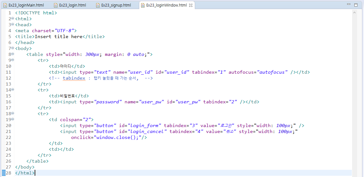 - tabindex="-1, 0, n" : 탭을 눌렀을 때 포커스 되는 부분의 우선순위를 정하는 속성