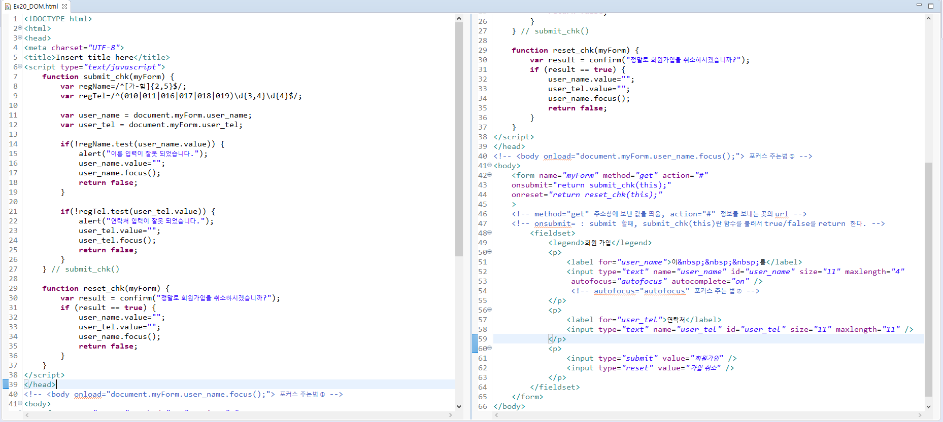 ② 이름과 전화번호의 유효성 검사를 위해 정규식을 작성한다.