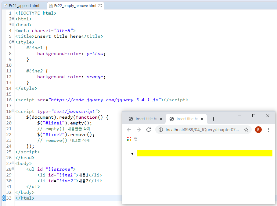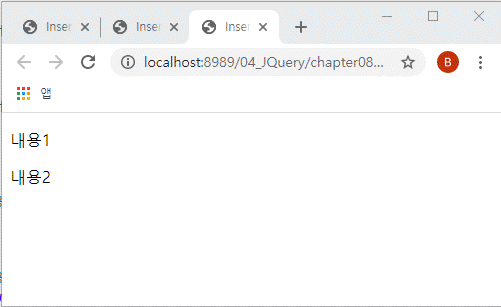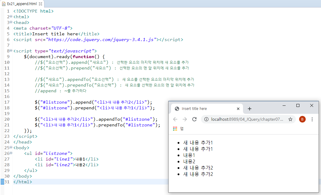 - appendTo() : 새 요소를 선택한 요소의 마지막 위치에 추가