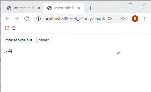 - on() 메서드를 이용하여 두 메서드를 동시에 실행시킬 수 있다.
