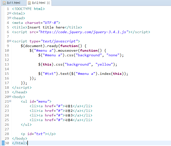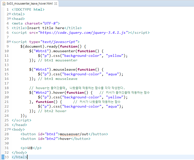 - mouseenter() : 선택한 요소의 영역에서 마우스를 올렸을 때 작동하는 메서드