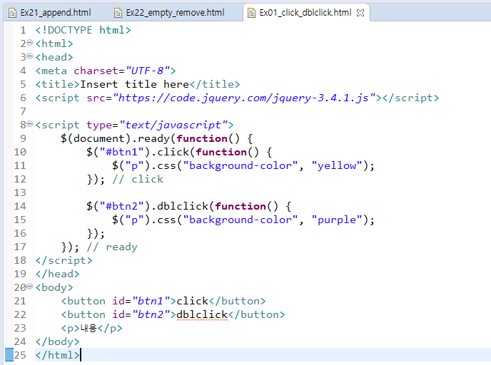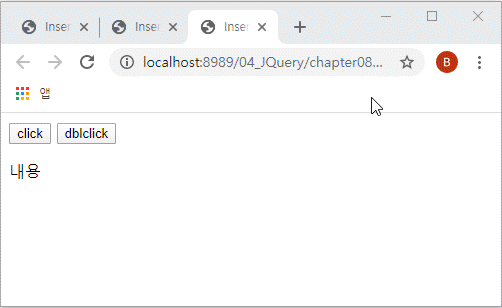 - dblclick() : 더블 클릭 이벤트가 생길 때 작동하는 메서드