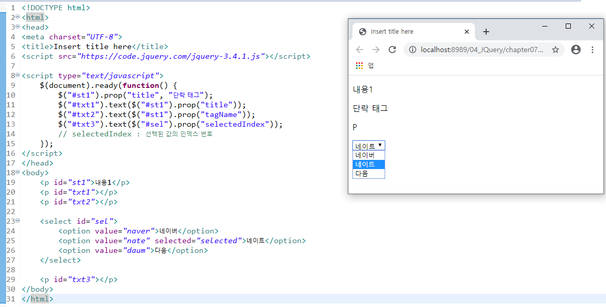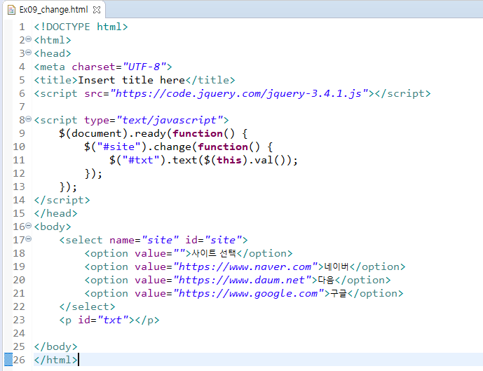 - change() : 폼 요소의 값이 변경될 때 작동하는 메서드