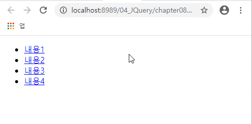 | 5. hide, show, toggle, fade in, out, toggle, to, animate, pause, resume, stop (0) | 2020.04.13 |