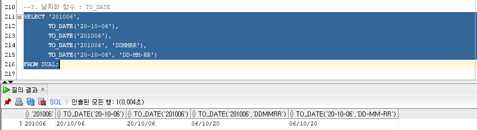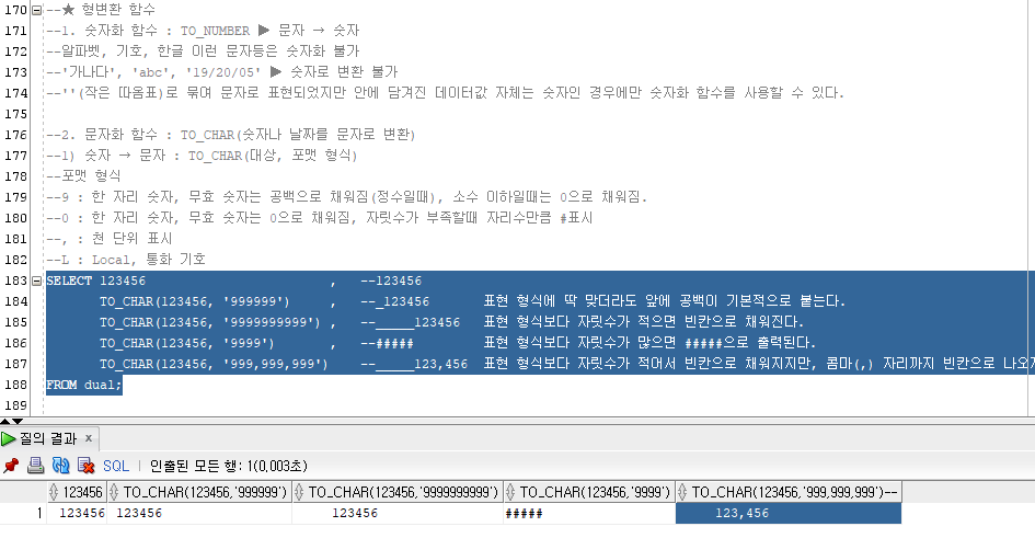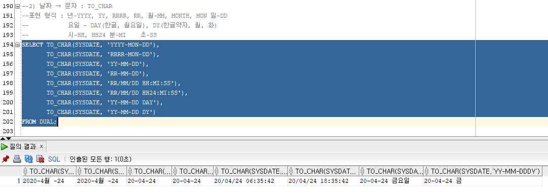 - 형 변환 함수 : TO_CHAR(), TO_DATE() -