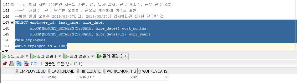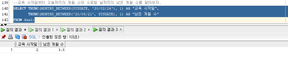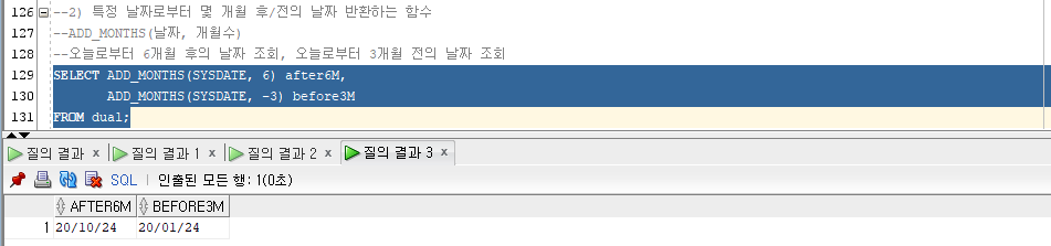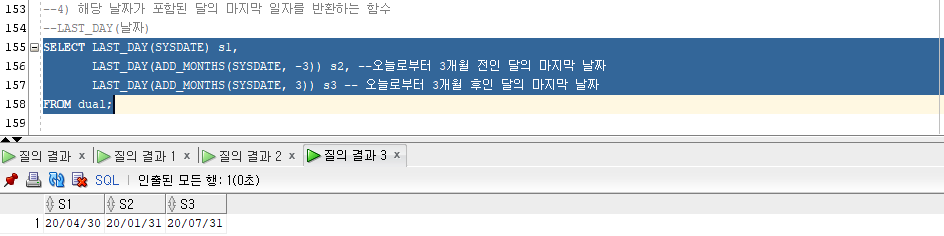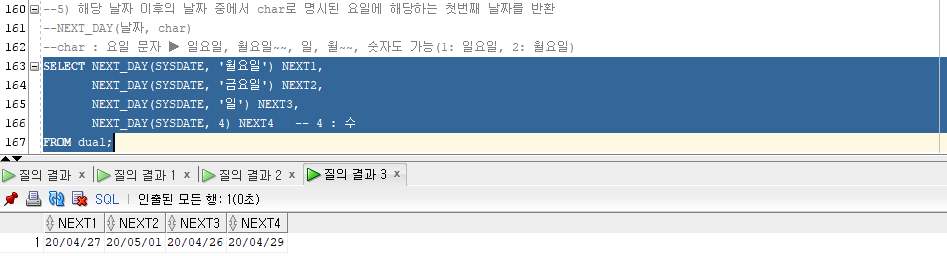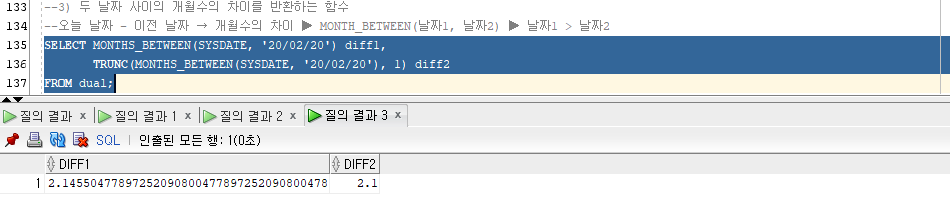 - 날짜 함수 : ADD_MONTHS(), MONTH_BETWEEN(), LAST_DAY(), NEXT_DAY() -