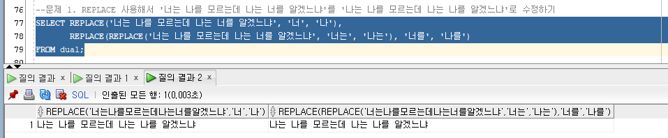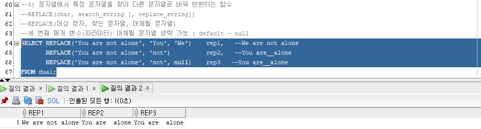 - REPLACE(대상 문자열, 바꿀 문자열, 입력될 문자열)