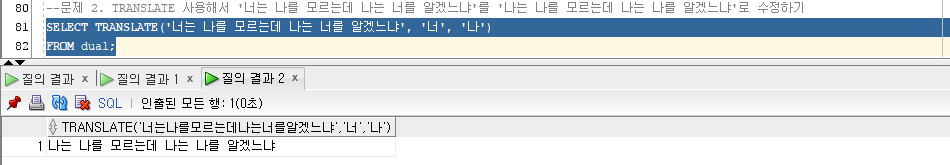 - TRANSLATE(대상 문자열, 바꿀 문자들, 입력될 문자들)