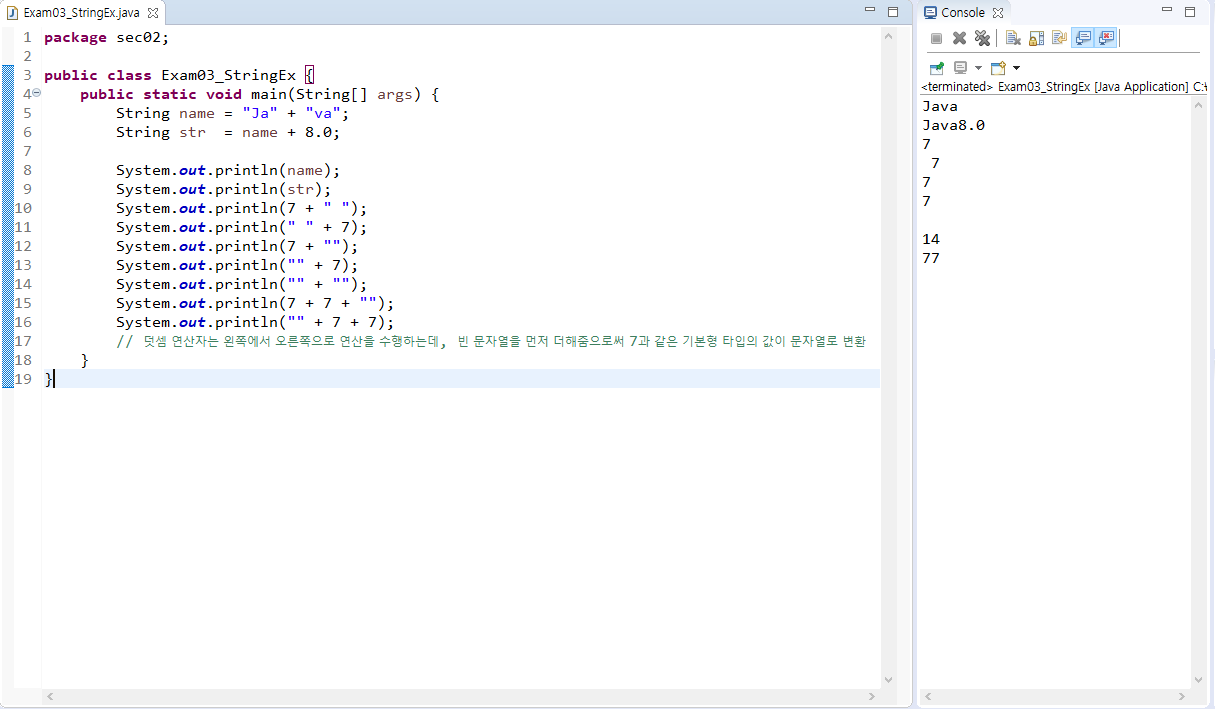 - any type + 문자열 → 문자열 + 문자열 →문자열