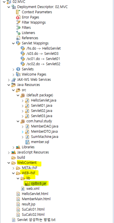 //DB 접속 : 정적 로딩(ojdbc6.jar ▶ WebContent → WEB-INF → lib 붙여넣기)