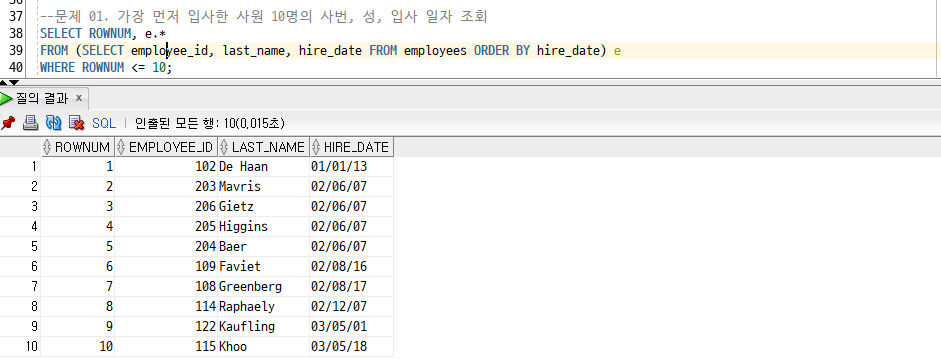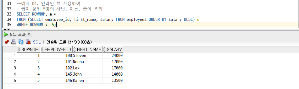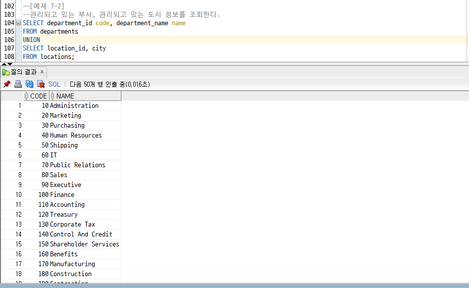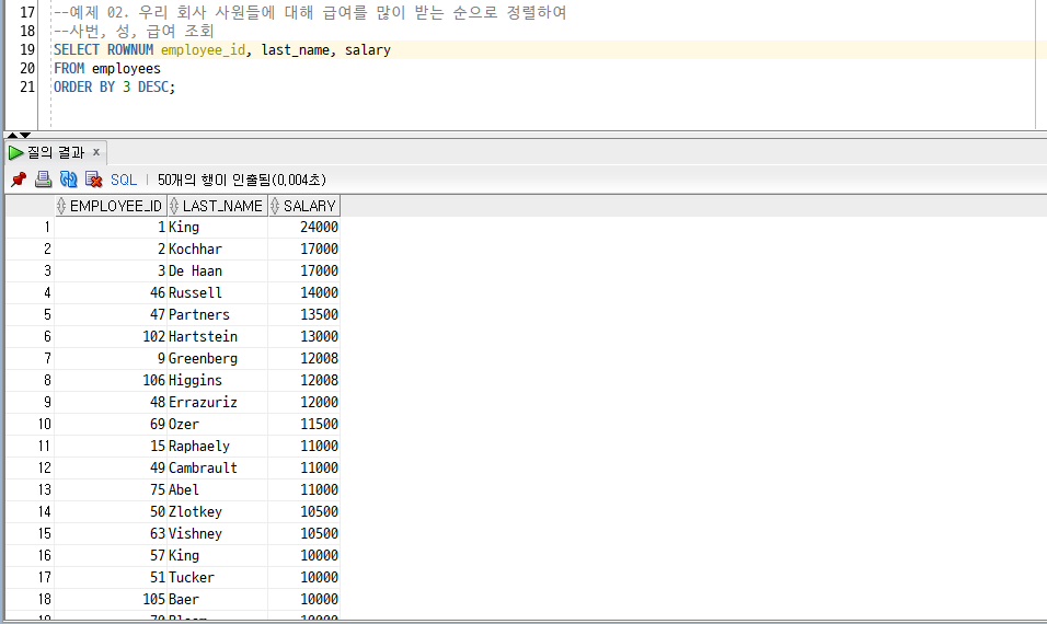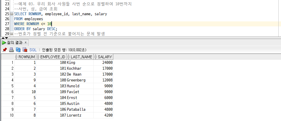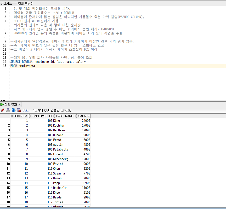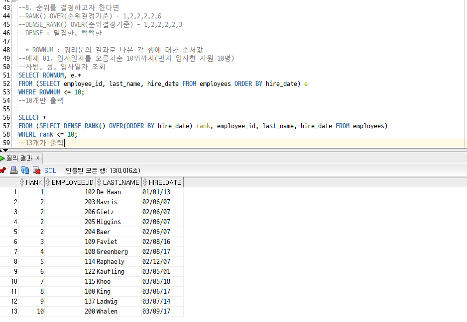 [Oracle] 15. ROWNUM/ RANK() OVER(), DENSE_RANK() OVER() /연습문제 6 - 4/SET 연산자 : UNION, INTERSECT, MINUS 본문