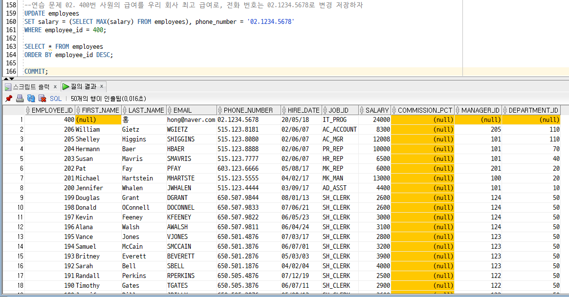 - DML : UPDATE -