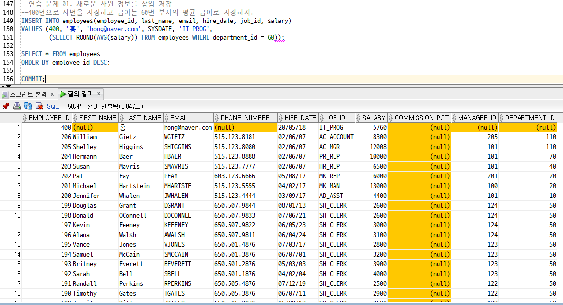 [Oracle] 16. DML : INSERT, ITAS, CTAS,UPDATE, DELETE