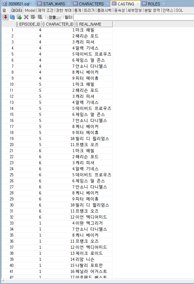 --3. 테이블명 : casting(등장인물과 실제 배우의 정보)