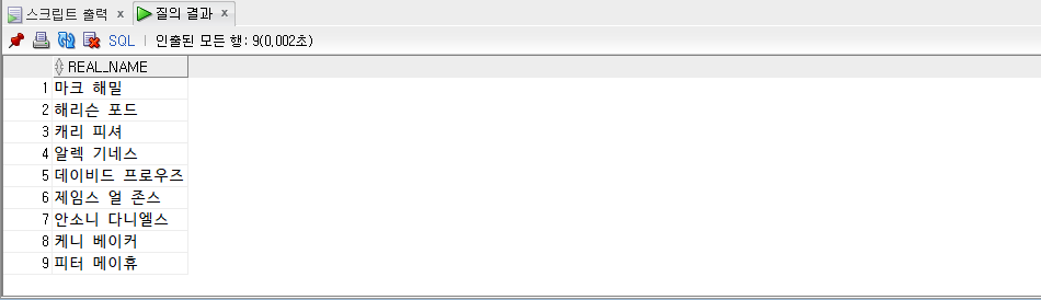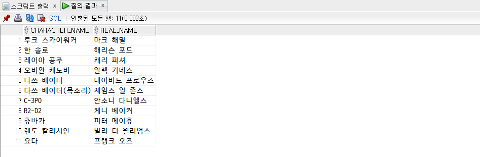 -- real_name : 등장인물의 실제 이름, 가변 문자 타입(30)