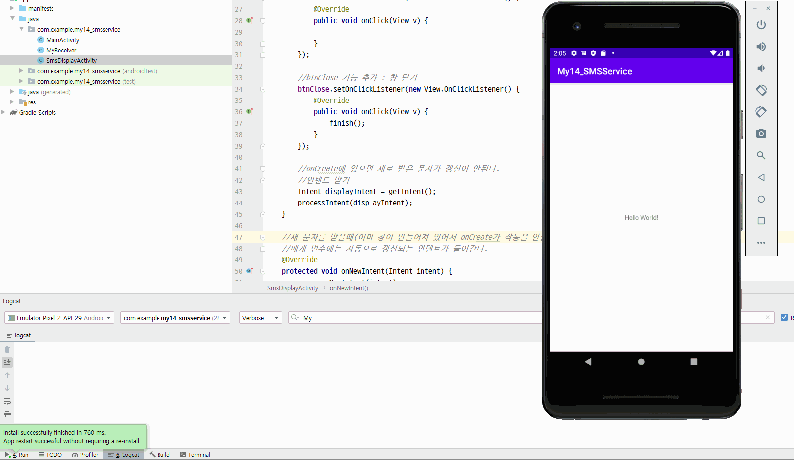[Android] 13. SMS 메시지 수신 후 내용 출력 본문