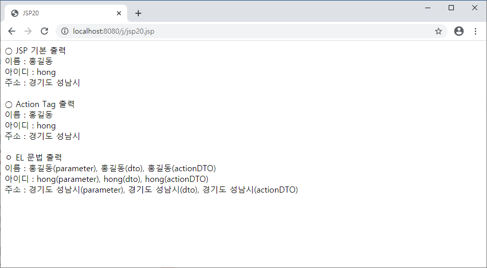 ○ 주소(EL, actionDTO) : ${actionDTO.addr }<br /><br />