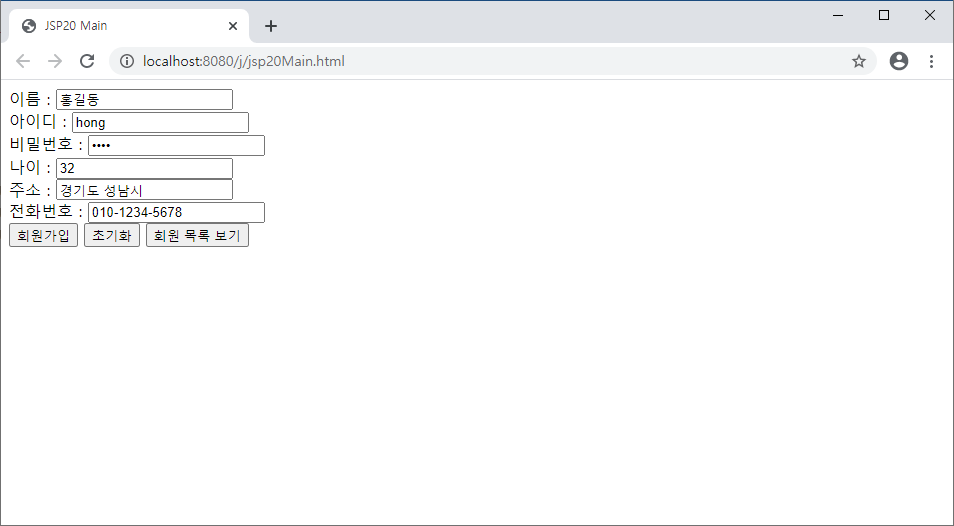| [Web] 9. JSP ③ : jsp06.jsp ~ jsp08jsp : 삭제 기능 추가, 회원 정보 수정 화면 구성 (0) | 2020.05.19 |