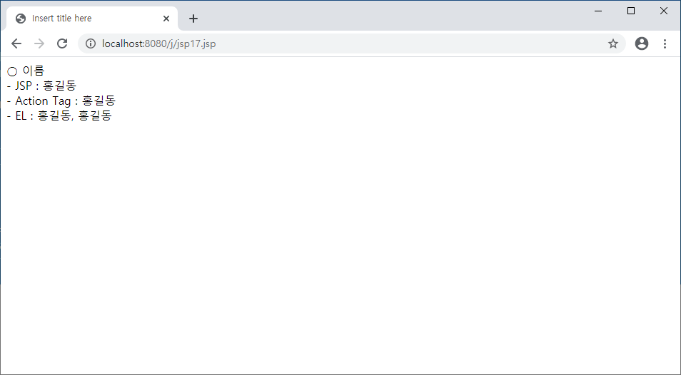 | ${ 객체이름 } | ${irum} | jsp21.jsp, jsp22.jsp |