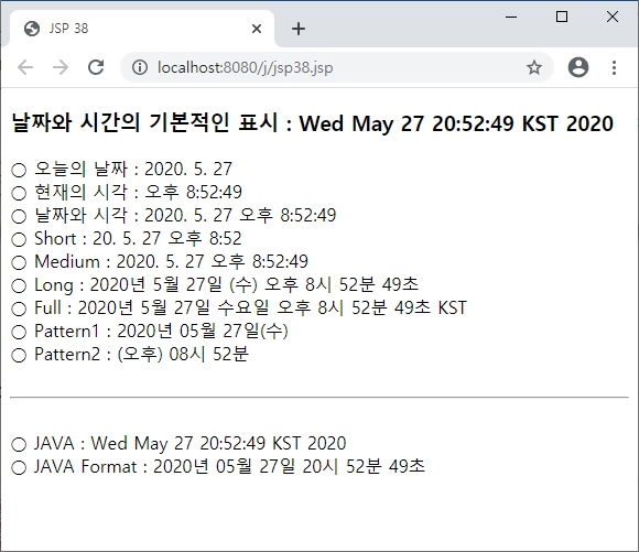○ Full : <fmt:formatDate value="${date }" type="both" dateStyle="full" timeStyle="full" /><br />