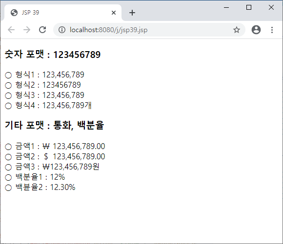 ○ 형식1 : <fmt:formatNumber value="${num }" groupingUsed="true"/><br />