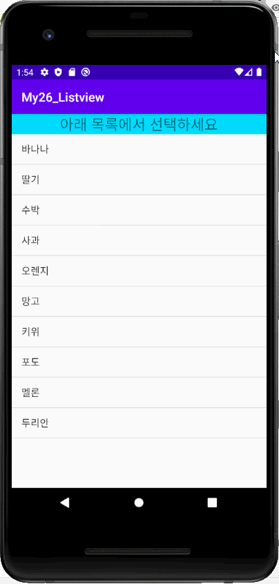 - 리스트 뷰(List View) ① : 리스트 뷰로 리스트 출력, 선택한 항목 하이라이트 -