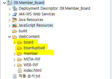 - boardupload : 게시판에서 첨부한 파일이 저장되는 폴더