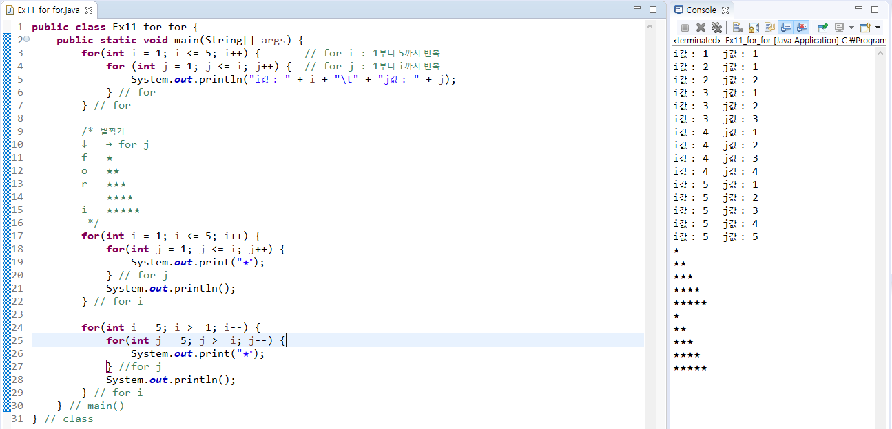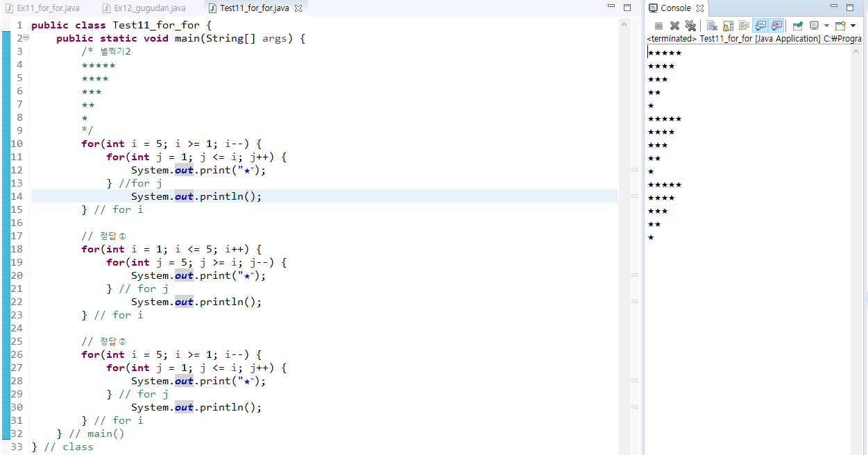 12. 중첩반복문(for_for문), 별찍기, 구구단 본문