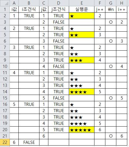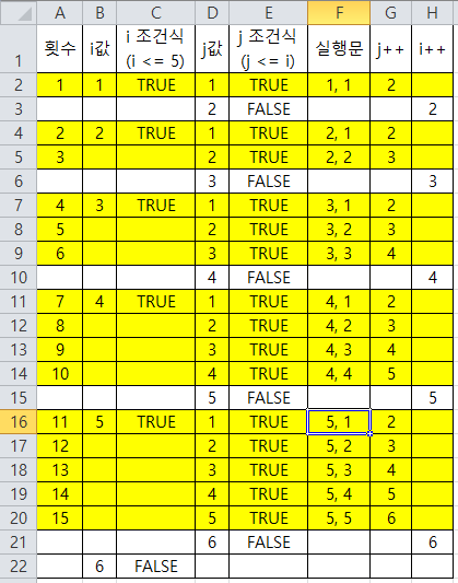 - 중첩반복문의 진행순서 (조건식이 모두 true일때)