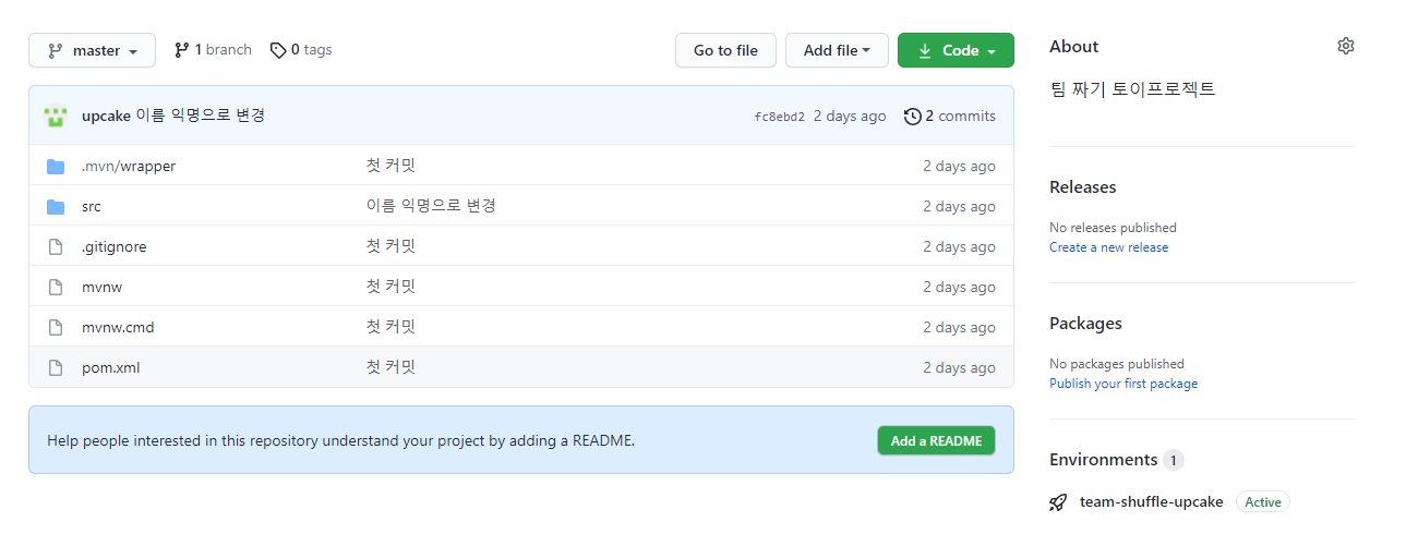 ② 깃허브 리포지토리(repository)에 프로젝트를 업로드하고