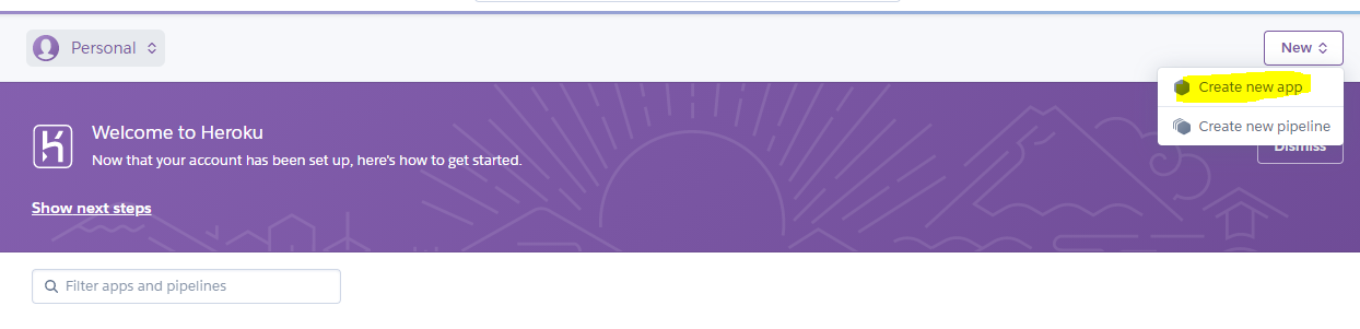 2. 헤로쿠에서 새 애플리케이션을 만든다.