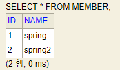 insert into member(name) values name('spring2');