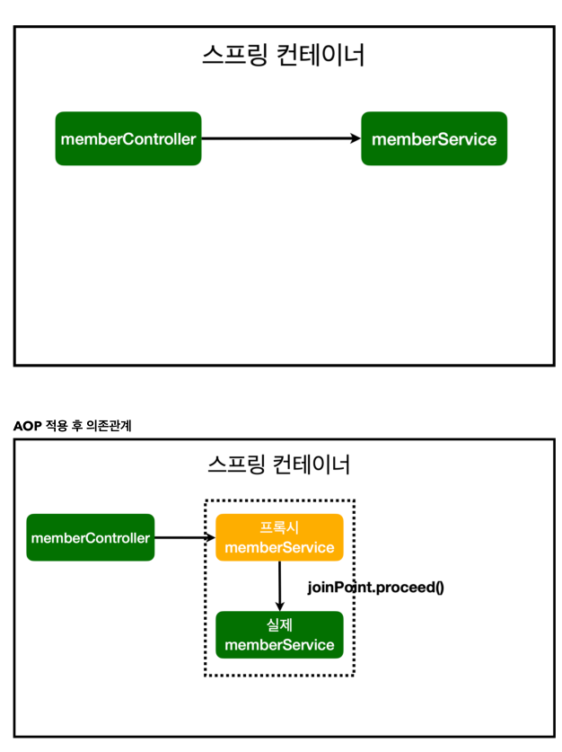 - 프록시 : 가짜 스프링 Bean 이라고 생각하면 된다