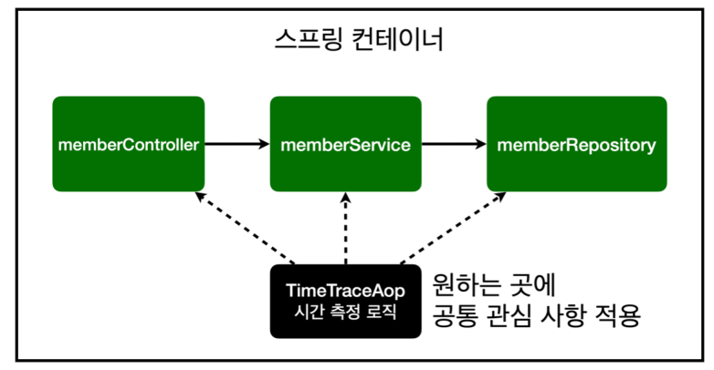 ① 회원가입, 회원 조회 등 핵심 관심사항과 시간을 측정하는 공통 관심 사항을 분리한다.