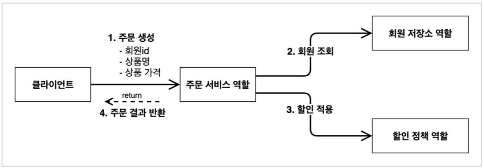 ③ 할인 적용 : 주문 서비스는 회원 등급에 따른 할인 여부를 할인 정책에 위임한다.