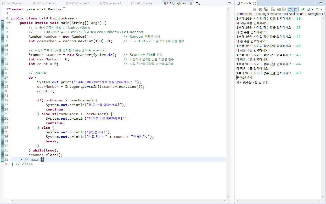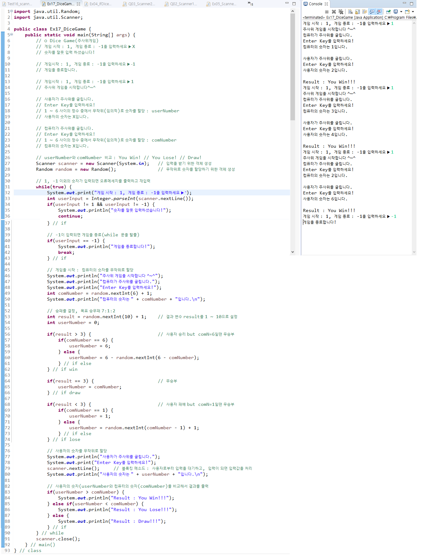 15. Scanner 문제, 승부조작 주사위 게임, 업다운게임 본문