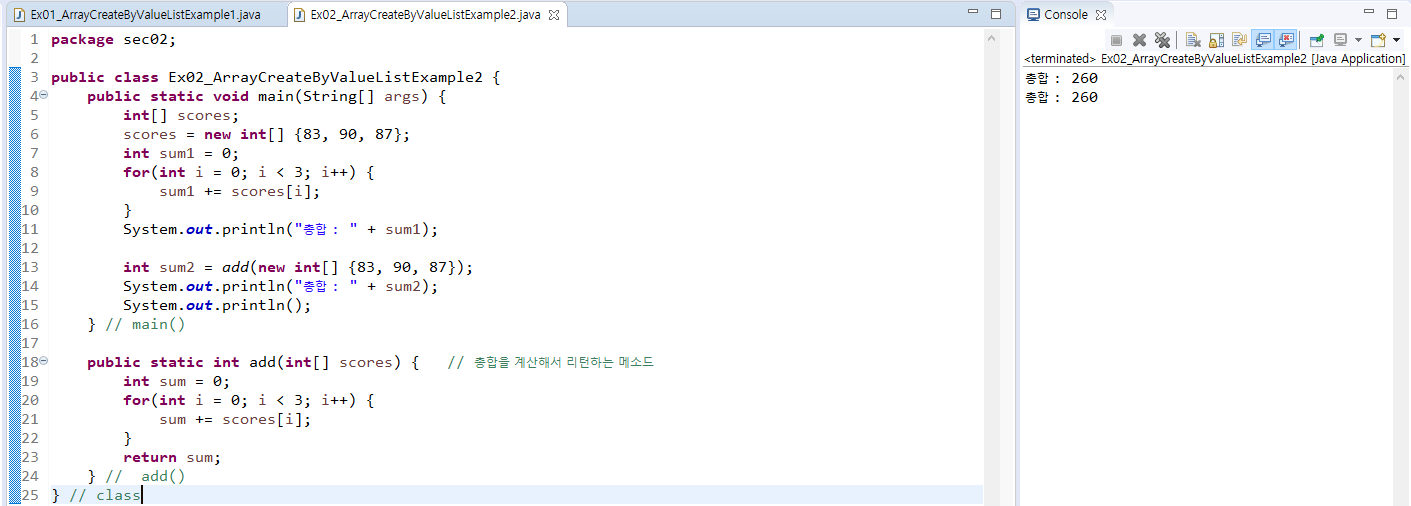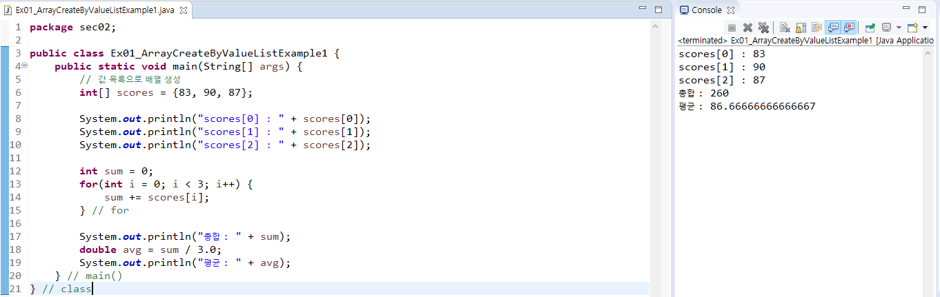 (1) 값 목록으로 배열 생성