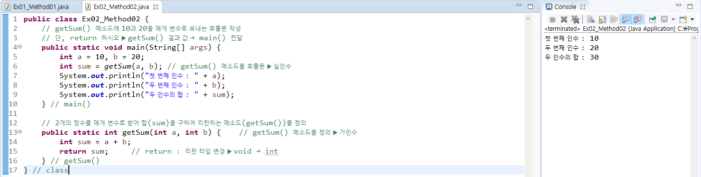 - return은 메소드가 동작을 완료한 후, 결과 값을 호출한 쪽으로 넘기는 행위이다.