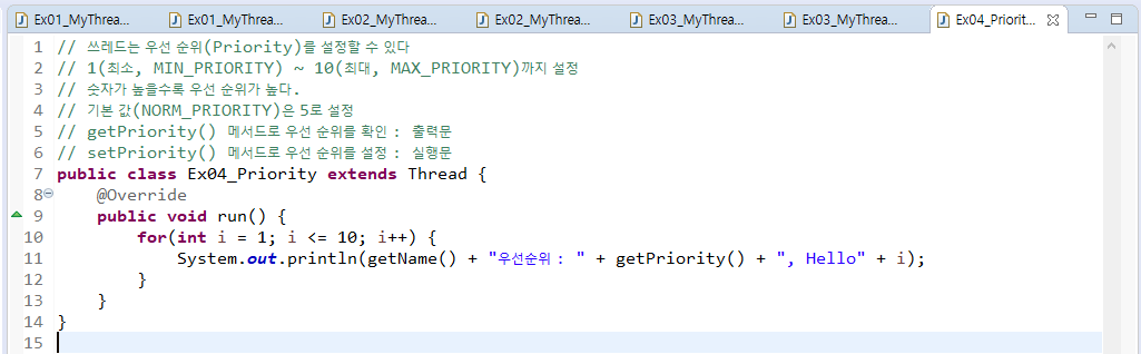 - setPriority 메서드를 이용해 우선순위를 설정할 수 있다.
