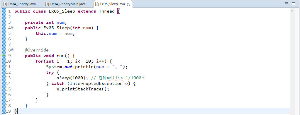 - sleep() 메서드로 대기 시간을 정할 수 있다.